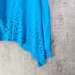 Jones New York Womens XL Blue Eyelet Off Shoulder Tunic Top Summer Resortwear