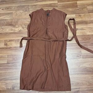 Jones New York Womens Camel Brown Flowy Tie Belted Midi Dress Size 10