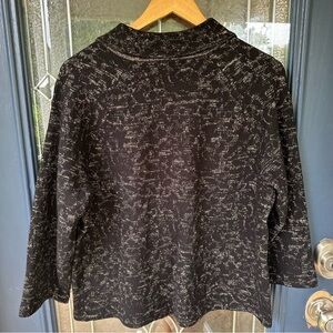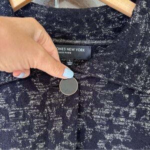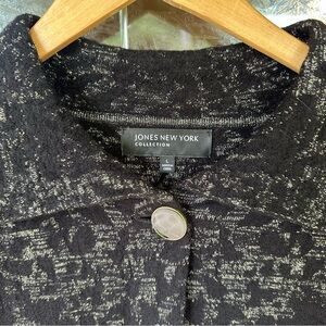 Jones New York coat, wool blend jacket, cropped sleeve coat, black metallic coat, textured blazer jacket, women’s wool blend outerwear, elegant winter coat, dressy black jacket, classic wool blend coat, Jones New York women’s clothing