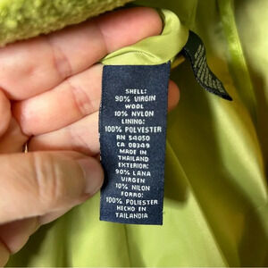 Beautiful spring green color. Fully lined. Open style (no button). 90% wool. In very good used condition. Great way to add a pop of color during the colder months!