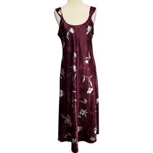 Jones New York Y2K Dress Large Burgundy Red Floral Satin Slip Dark Fairy Grunge