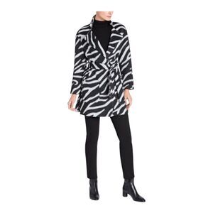 Jones New York Zebra Print Faux Fur Zebra Print Long Line Belted Wrap Trench Coat, M