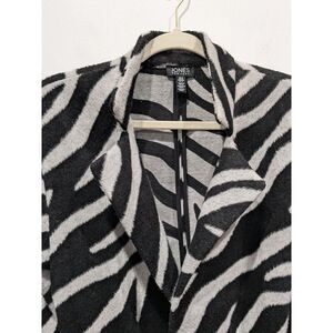 Jones New York Zebra Print Faux Fur Zebra Print Black & Gray Belted Wrap Coat, M