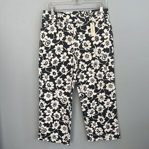Jones New York black and white floral capris Women’s 4 ~ New w Tags