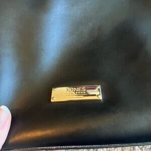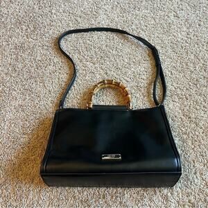 Jones New York black faux leather satchel cross body purse with bamboo handles