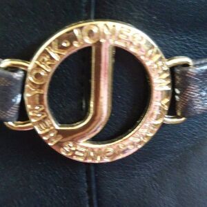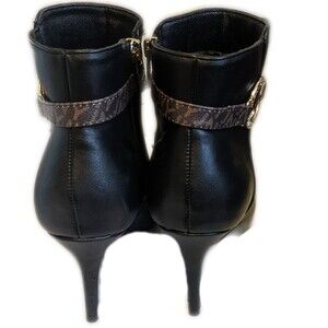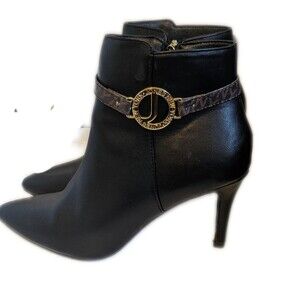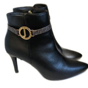 Jones New York black heeled Maryam booties, logo strap, faux leather 8.5