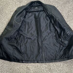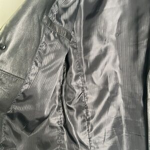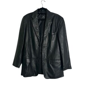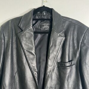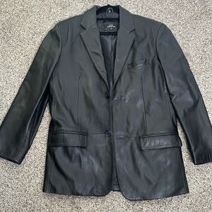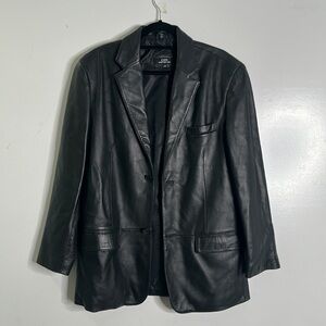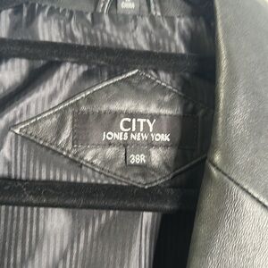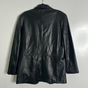 Jones New York black leather blazer size 38R great condition armpit to armpit 22 inches shoulder to hem 32 inches