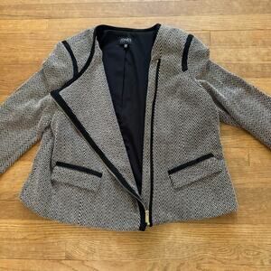 Jones New York black tan chevron print front side zip jacket size 18 b11