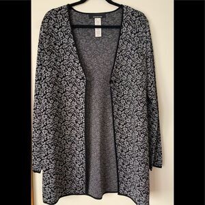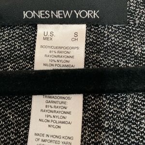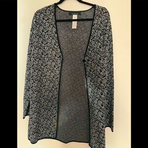 Jones New York black/silver grey heavy, long cardigan, one button in the front, used once, excellent condition, size Small. Amazing!!!