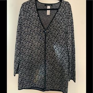 Jones New York black/silver grey, long cardigan, worn inside once, great shape,S