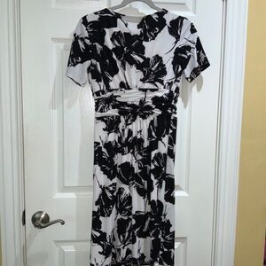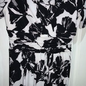 Jones New York floral faux wrap dress Sz 4 V neck fit & flare ruched waist…