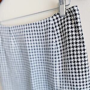 FEATURES: classic black and white houndstooth pattern, tweed material, pencil silhouette, vented hemline, center back zip closure, modest knee length, lined, NEW