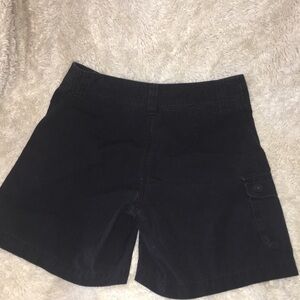 Black shorts with a side pocket cargo pocket , There is also key ring on the front as well as a small pocket