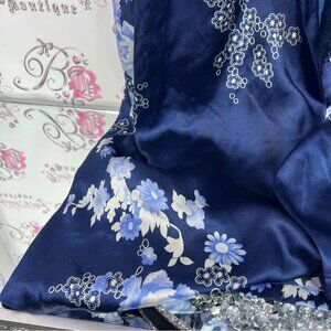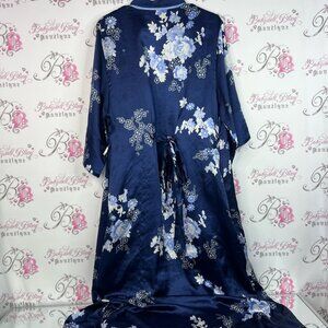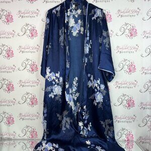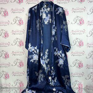 Jones New York robe tie up cardigan long style Navy and White Floral Kimono