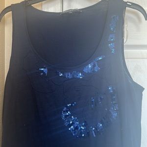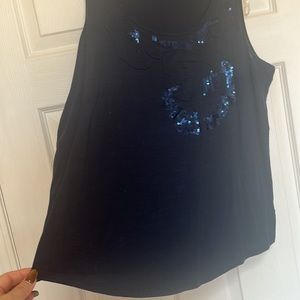 Jones New York navy blue beautiful tank top, sequin design, simple but elegant. Rounded bottom