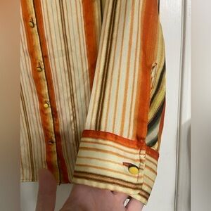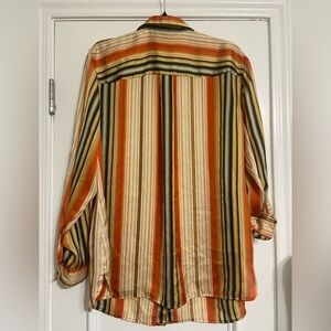 Jones New York women's 1X button front stripe blouse with enamel buttons EUC