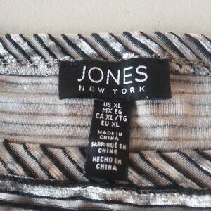 Jones New York black, gray and silver striped metallic top, pull over, 3/4 sleeves