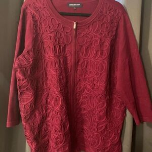 Jones New York zip front sweater with 3/4 inch sleeves