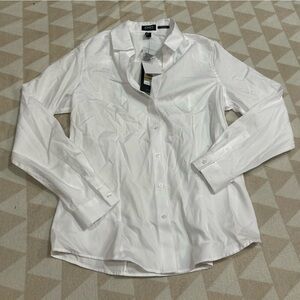 Jones New York Point Collar Long Sleeve Button Front Cotton Shirt