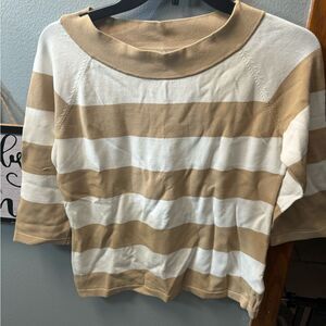 Jones New York Striped Rayon Nylon Scoop Neck Top Size Petite M