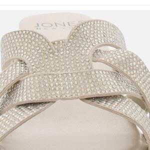 Step into style and comfort with these Jones New York Women's Enny Embellished Slide Sandals. Featuring a stunning light gold finish, these slides are adorned with elegant embellishments that add a touch of sparkle to your look. Designed with both fashion and functionality in mind, they offer a sleek and comfortable fit, perfect for any occasion. Sized at 7, these brand-new sandals are the ideal choice to elevate your casual wardrobe with effortless sophistication. Treat yourself to this must-have pair today!