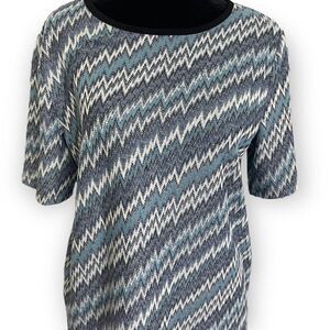 Jones New York Zig Zag Print Blue Blouse Light Weight Zipper Closure Size Medium