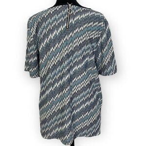 Great blouse to dress up or down for almost any occasion. Zipper closure in the back and great condition. Slits on the side with a zig-zag/chevron print