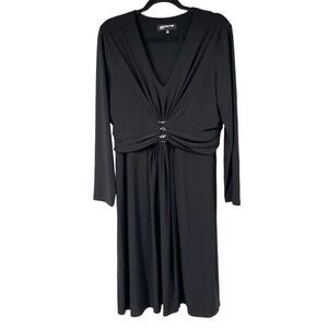 Jones New York Black V Neck Long Sleeve Dress
