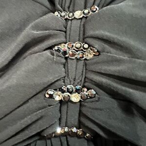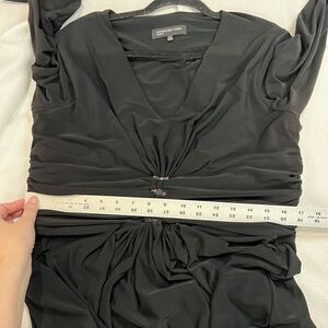 Jones New York Black V Neck Long Sleeve Dress. Size 16 with measurements in the pictures. Gently used condition with no rips or stains but a couple of the stones are missing (shown in the picture).