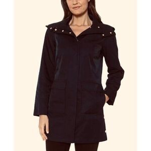 Jones New York Hooded Black Snap-Collar Raincoat Size Extra Small NWT