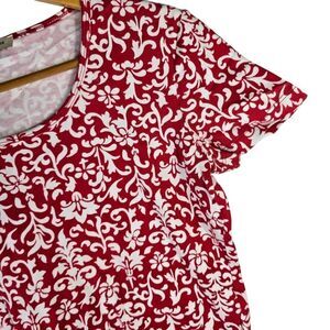 Turn heads with this vibrant red blouse adorned in a delicate white floral print. Crafted from lightweight, breathable fabric, it features a flattering round neckline and easy short sleeves—perfect for warm days or layering under a jacket. The intricate floral design adds a touch of elegance and charm, making it ideal for casual outings, brunch dates, or a pop of color in your everyday wardrobe. Pair it with denim for a laid-back look or dress it up with tailored pants for effortless chic.