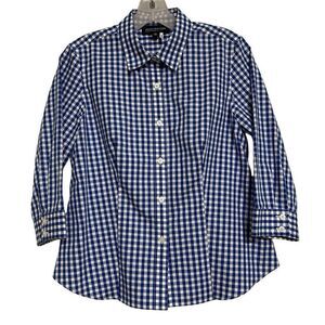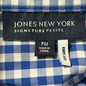 Jones New York Signature Button-Up Top Womens Medium Petite Blue & White Gingham