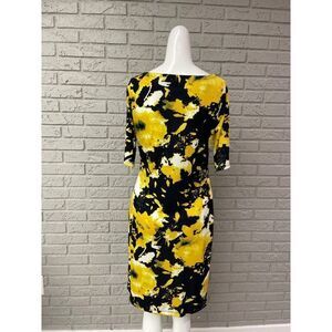 Jones New York Women Yellow Multicolored Side Draped Ruched Dress Size S