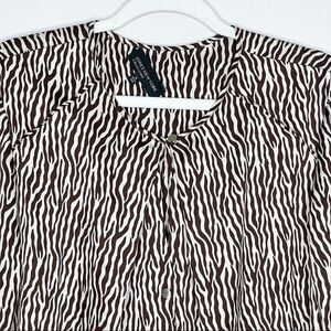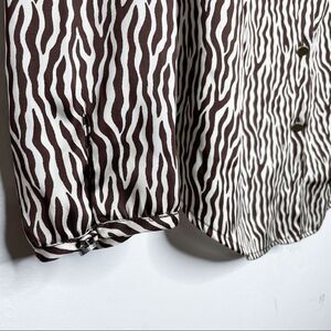 Jones New York Collection nude / brown / cream / neutral tiger print button down blouse