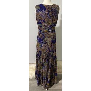 Jones New York tiered whimsical purple paisley maxi dress size 10 no rips or stains