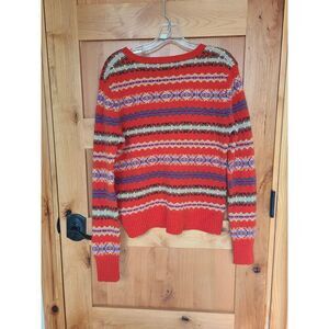 Jones New York Y2K Fair Isle Orange Sweater Lambswool Wool Button V Neck MEDIUM