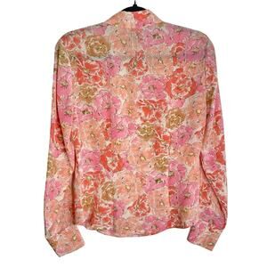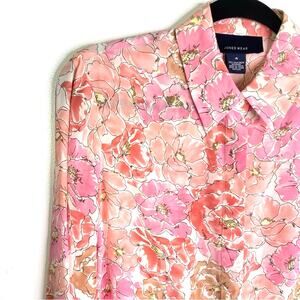 Jones Silk Floral Print Button Down Shirt Poppy Flowers 4