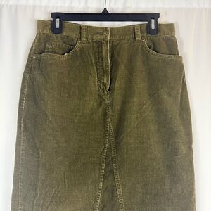 Jones Sport Skirt Size 10 Olive Green Stretch Corduroy Casual Country Boho Twee