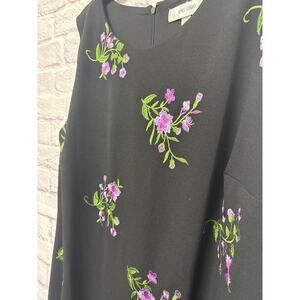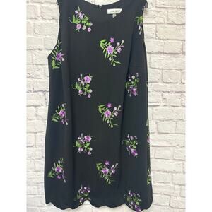 Jones Studio Black Purple Embroidered Sleeveless Floral Midi Sheath Dress SZ 20W