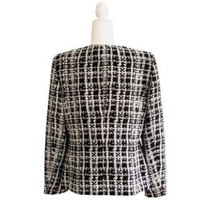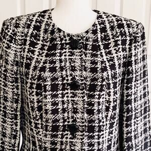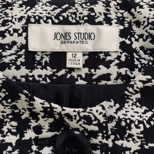 Jones Studio Blazer Jacket Separates Black White Herringbone Career Size 12