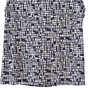 This Jones Studio New York Sleeveless Blouse features a stylish layered cowl neck in white with a blue print and is available for purchase in size 1X. Made from a comfortable and lightweight blend of 95% polyester and 5% elastane, this blouse offers a classic fit with a geometric design. The pullover closure and sleeveless style make it a versatile option for all seasons, while the designer's reputation for quality ensures a flattering and durable garment for any occasion.