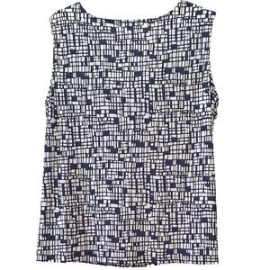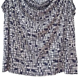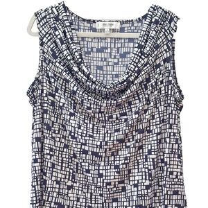 Jones Studio NY Sleeveless Blouse (1X), Drape Cowl Neck, White w/Blue Print NWOT