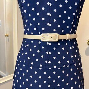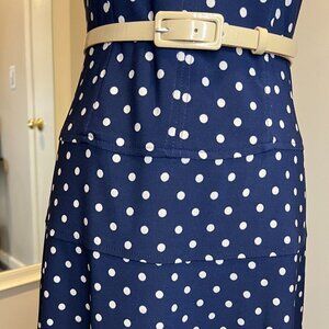 Jones Studio Navy Polka Dot Belted Fit and Flare Midi Dress, Size 4
