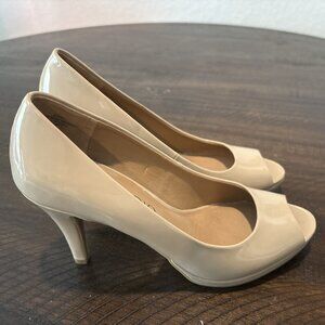 Jones Studio Nude Open Toe Vegan high heel Pumps sz 7.5”