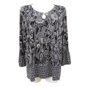 Jones Studio PLUS 3X Artsy Paisley Flowy Tunic Top Bell Sleeves Whimsical Blouse