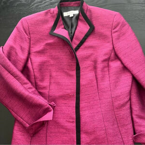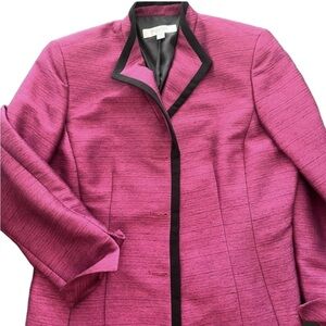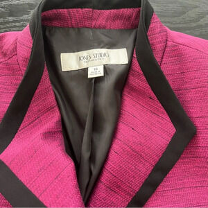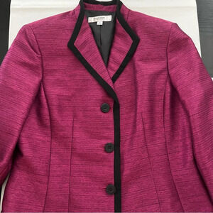 Jones Studio Separates vintage fully line jacket with black trim. Size 14. Dark pink color. Three large buttons. Outer shell 99% polyester 1% other. Lining 100% polyester.