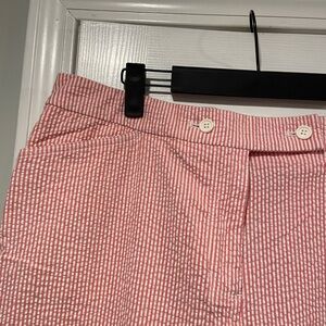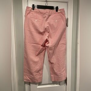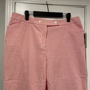 Jones Studio Size 14 Pink White Stripe Seersucker Cotton Stretch Cropped Pants