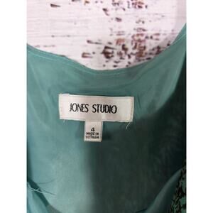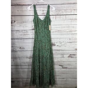 Jones Studio Vintage Teal Brown Paisley Tiered Boho Maxi Dress size 4