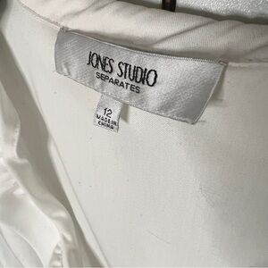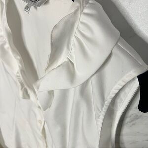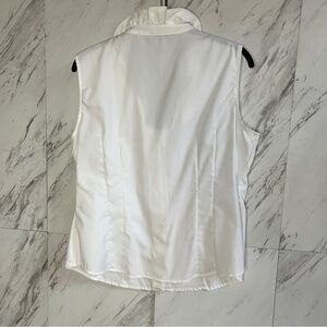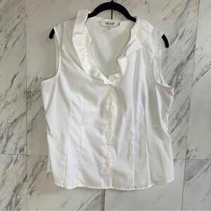 Jones Studio White Sleeveless Ruffle Button Up Cotton Blouse SZ 12