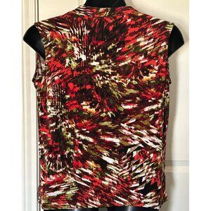 Jones Studio Womens Sleeveless V-Neck Top Size 14W Red/Black/Green Abstract Prin